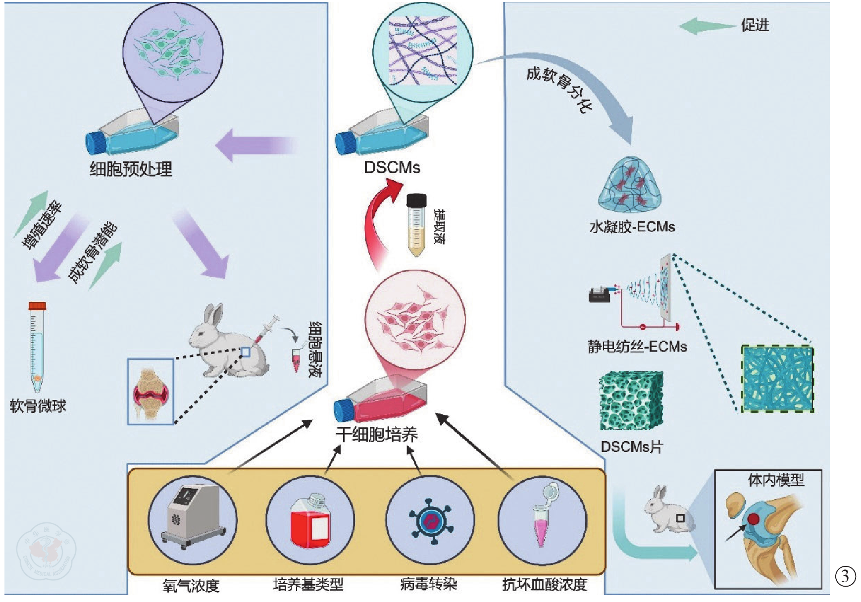 钱嘉天, 符培亮. 3D打印脱细胞的细胞外基质修复软骨缺损的研究进展[J/OL]. 中华关节外科杂志(电子版), 2023, 17(3): 368-375.